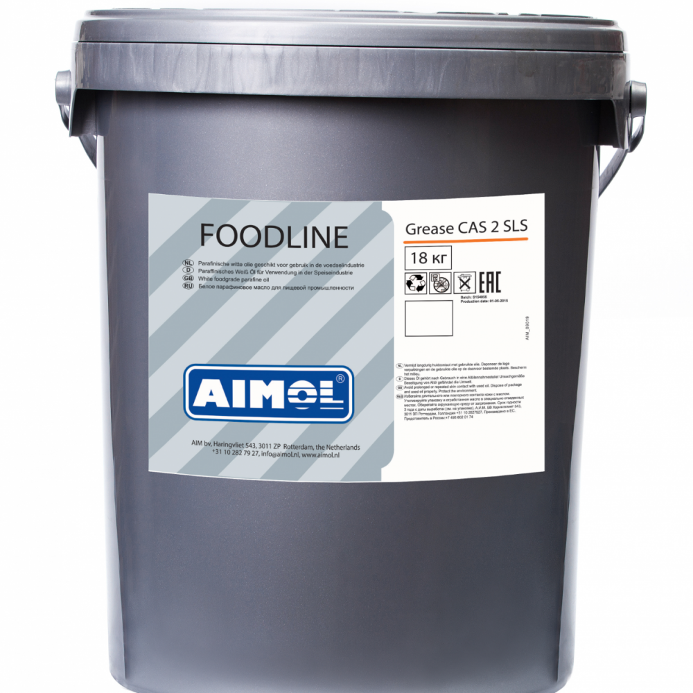 AIMOL Foodline grease CAS 2 SLS este un lubrifiant de ultima generatie pe baza de complex modificat de sulfonat de calciu. Lubrifiantii produsi prin aceasta tehnologie au o stabilitate mecanica foarte ridicata, au un punct de picurare foarte ridicat, o capacitate mare de incarcare, reduc uzura si au o rezistenta excelentă la apa si la coroziune. Lubrifiantii produsi utilizand aceasta tehnologie sunt semnificativ mai bunifata de alti lubrifianti temperaturi inalte care sunt pe baza de agent de ingrosare de complex de litiu, aluminiu sau poliuree. Lubrifiantul este produs pe baza de ulei sintetic cu viscozitate ridicată (PAO) si este utilizat pentru rulmenti de viteza joasa si medie. Conform cu standardele alimentare NSF si InS H1 pentru contactul accidental cu alimentele.